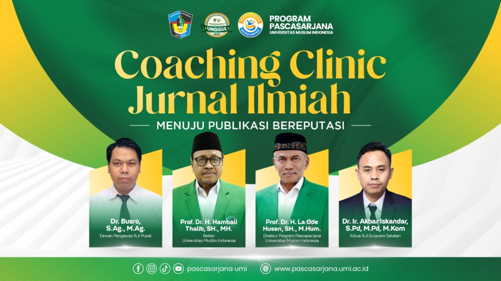Program Pascasarjana Universitas Muslim Indonesia akan menyelenggarakan kegiatan “Coaching Clinic Jurnal Ilmiah: Menuju Publikasi Bereputasi” sebagai upaya memperkuat kapasitas peneliti, dosen, dan mahasiswa dalam peningkatan kualitas publikasi ilmiah.